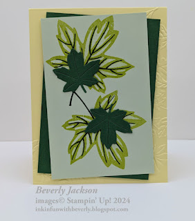 I was scrolling through the online exclusives yesterday to see what was still available as I want to make sure I'm using products that are current. I'm thrilled that the Leaf Fall 3D embossing folder is still around. It's so lovely, and inspiration from one of the online samples is where today's card got its start.